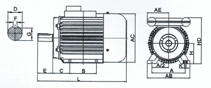 特點說明YL是電容運轉與電容啟動電動機;YL電動內部帶有高心開關,主要適用于要求啟動轉矩較大的設備.YL系列單相電機具有噪聲小,溫升低的特點防護等級IP54,F級絕緣B級溫升考核:安裝尺寸合IEC 標準: